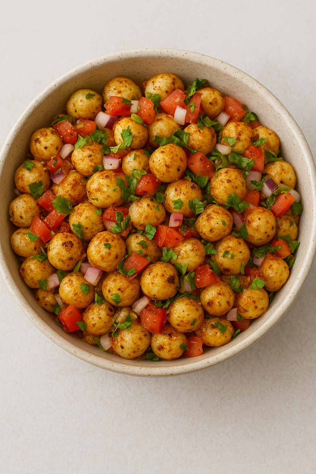 6. Garnish with fresh coriander leaves and a light sprinkle of sev for extra crunch.